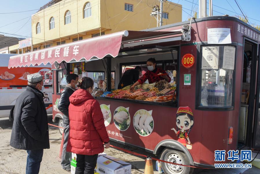 新華社烏魯木齊11月20日電(記者張鐘凱、丁磊)午飯時間,在新疆和田地區(qū)墨玉縣扎瓦鎮(zhèn)客運(yùn)站旁,一輛棗紅色餐車飄出陣陣肉香。烤雞柳、炸雞脖、炸雞排……琳瑯滿目的美食吸引了不少食客。