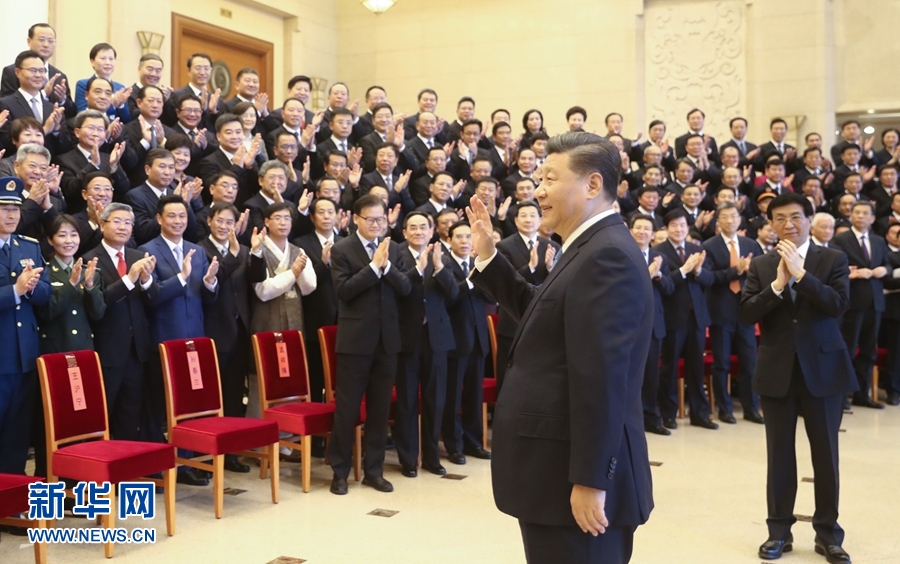 上午10時,習(xí)近平等來到京西賓館會議樓前廳,全場響起熱烈掌聲。習(xí)近平等走到代表們中間,同大家親切交流并合影留念。