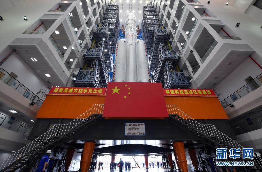 11月17日,長征五號遙五運載火箭和嫦娥五號探測器在中國文昌航天發(fā)射場完成技術(shù)區(qū)總裝測試工作后,垂直轉(zhuǎn)運至發(fā)射區(qū),計劃于11月下旬擇機實施發(fā)射。新華社記者 郭程 攝