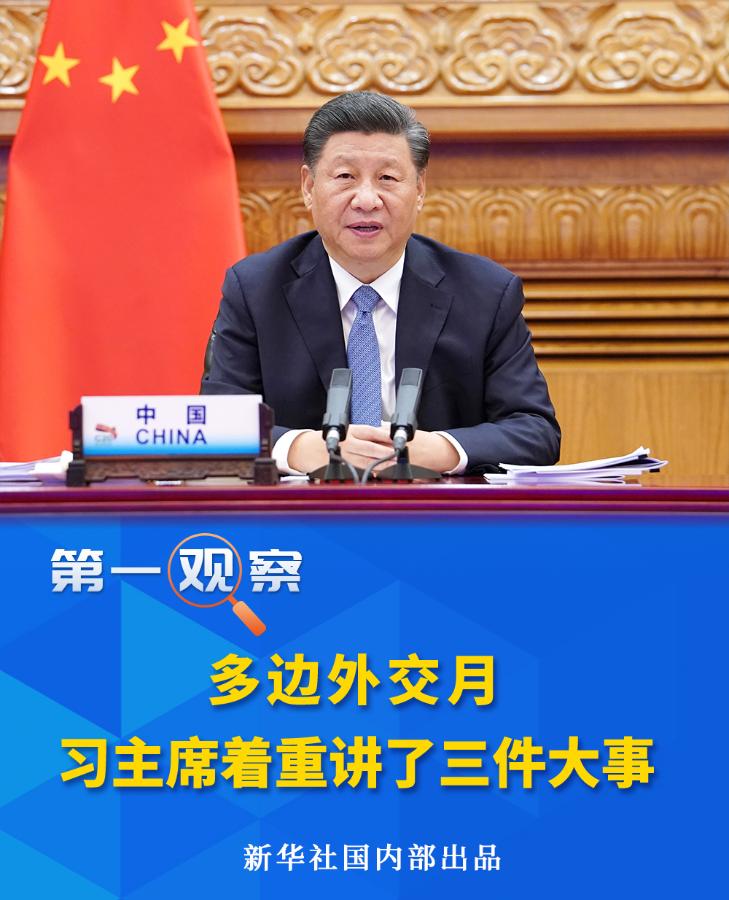 繼9月底10月初出席聯(lián)合國成立75周年系列活動(dòng),11月10日至22日,習(xí)近平主席又以視頻方式接連出席了上合、金磚、APEC、G20四大多邊平臺(tái)的一系列重大外交活動(dòng)。