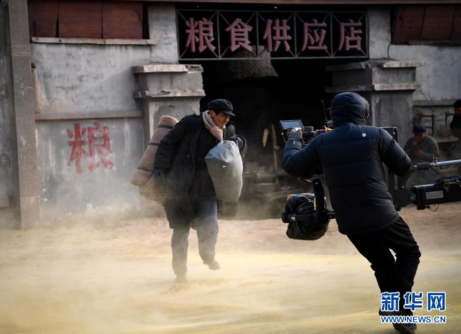 11月25日,焦裕祿扮演者郭曉東(左)在片場(chǎng)拍攝。新華社記者 王鵬 攝