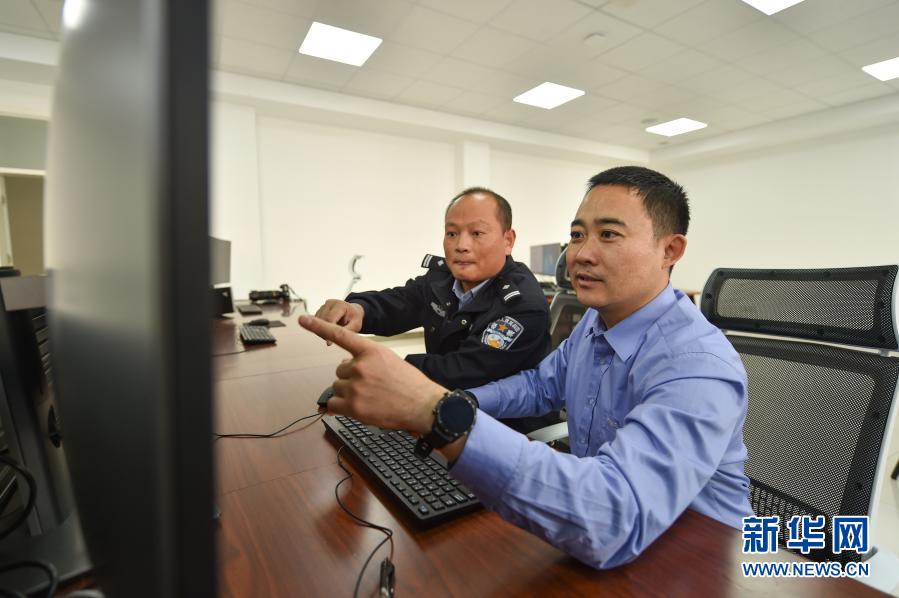 張忻鑫(右)在現(xiàn)場進行痕跡采集(2016年2月17日攝)。新華社發(fā)