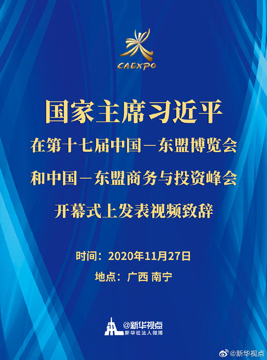 第十七屆中國-東盟博覽會和中國-東盟商務(wù)與投資峰會開幕式11月27日在廣西南寧舉行。國家主席習(xí)近平發(fā)表視頻致辭。?