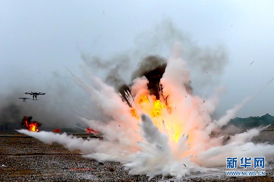 油料保障隊組織參賽隊員進(jìn)行無人機滅火作業(yè)(12月1日視頻截圖)。新華社發(fā)(呂冀周 攝)
