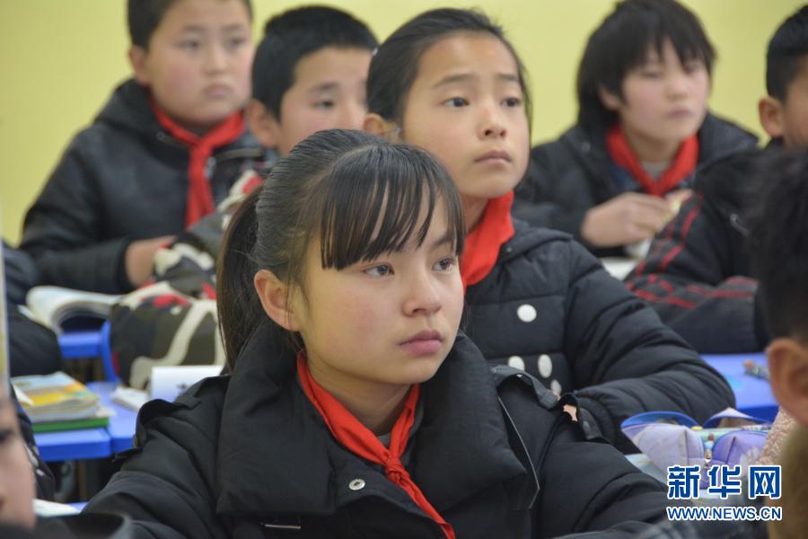 12月1日,在廣河縣三甲集鎮(zhèn)火炬小學(xué),東鄉(xiāng)族女孩馬梅(前排)正在教室內(nèi)聽講。新華社記者顏之宏攝
