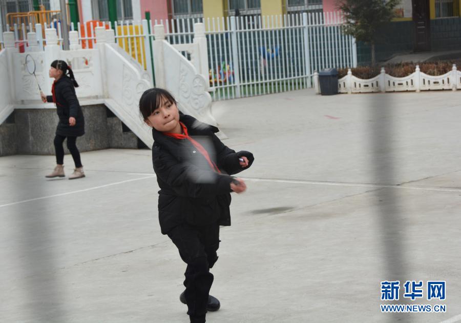 12月1日,在廣河縣三甲集鎮(zhèn)火炬小學(xué)的操場(chǎng)上,馬梅在課間和同學(xué)打羽毛球。新華社記者顏之宏攝