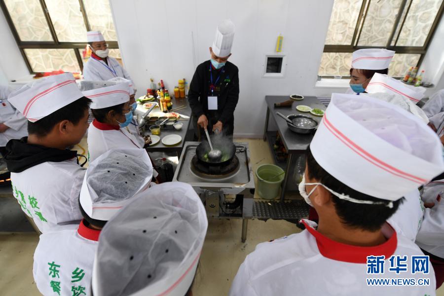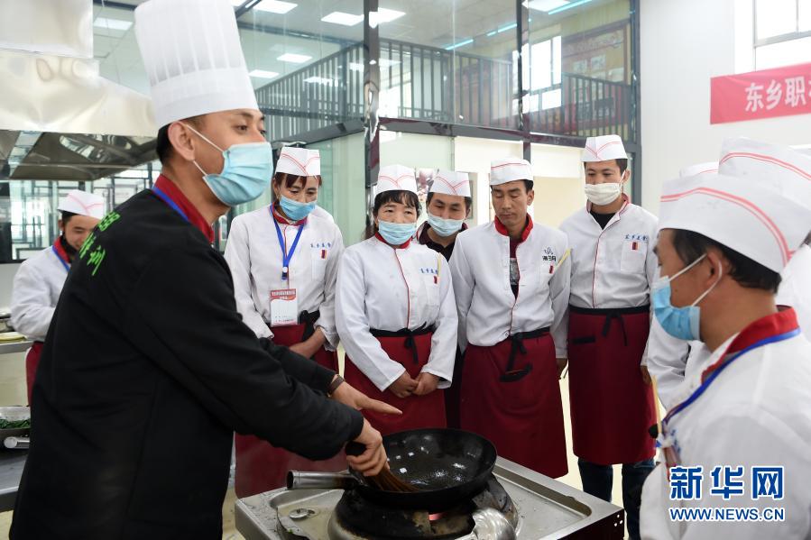 東鄉(xiāng)縣職業(yè)技術學校烹調(diào)面點培訓班學員在上課(4月21日攝)。新華社記者 范培珅 攝