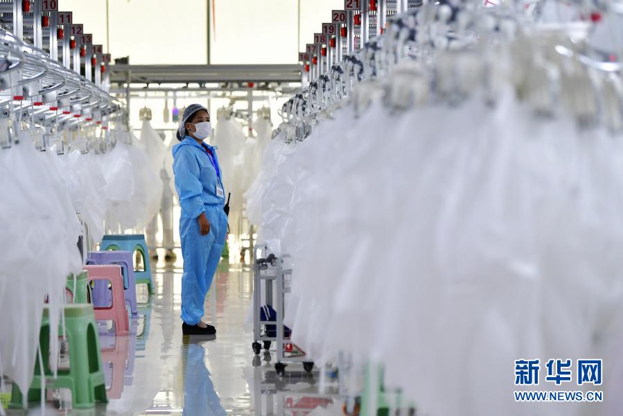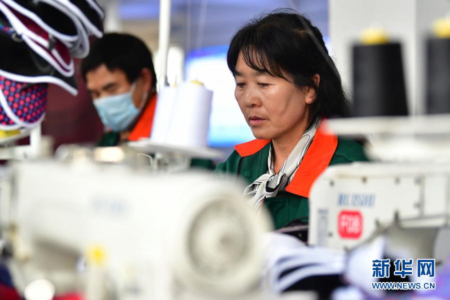 在臨夏回族自治州積石山縣,依托東西部扶貧協(xié)作平臺引進的服裝加工企業(yè)甘肅拓奇扶貧車間的員工在服裝加工生產(chǎn)線上作業(yè)(8月9日攝)。新華社記者 陳斌 攝