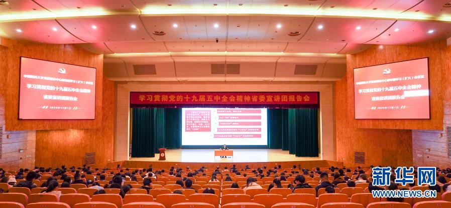 中共江蘇省委宣講團在中國藥科大學(xué)進行學(xué)習(xí)貫徹黨的十九屆五中全會精神專題報告會(12月1日攝)。新華社記者 李博 攝