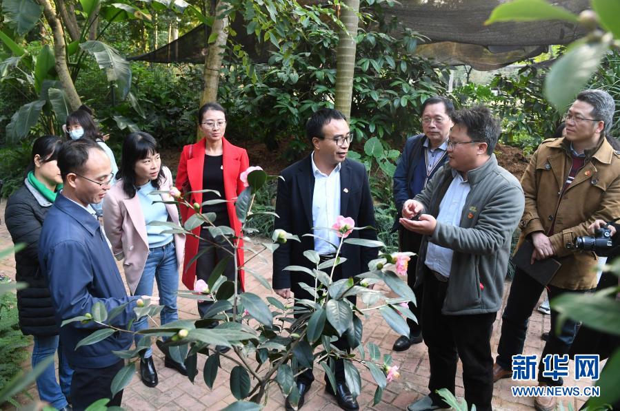 在廣西南寧市金花茶公園,南寧市市政和園林管理系統(tǒng)部分黨員干部聯(lián)系實際學(xué)習(xí)黨的十九屆五中全會精神(12月3日攝)。新華社記者 陸波岸 攝