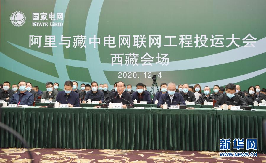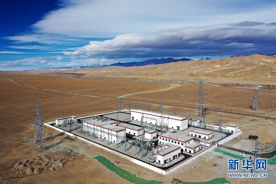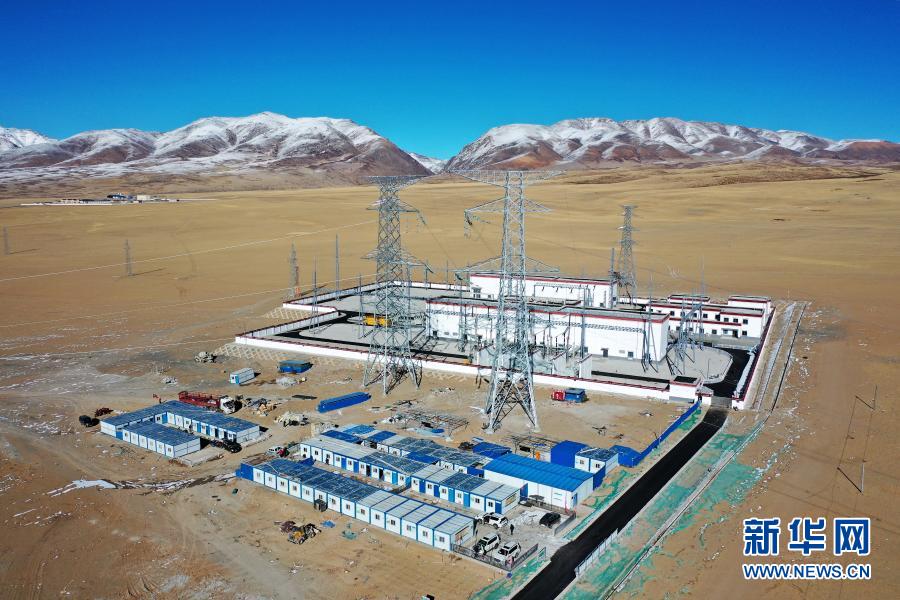 12月4日拍攝的西藏阿里與藏中電網聯網工程投運大會霍爾220千伏變電站分會場。新華社記者 詹彥 攝