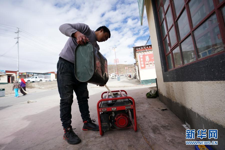 在西藏阿里地區(qū)普蘭縣巴嘎鄉(xiāng)崗莎村,一家飯店的工作人員準備用發(fā)電機發(fā)電(11月29日攝)。新華社記者 詹彥 攝