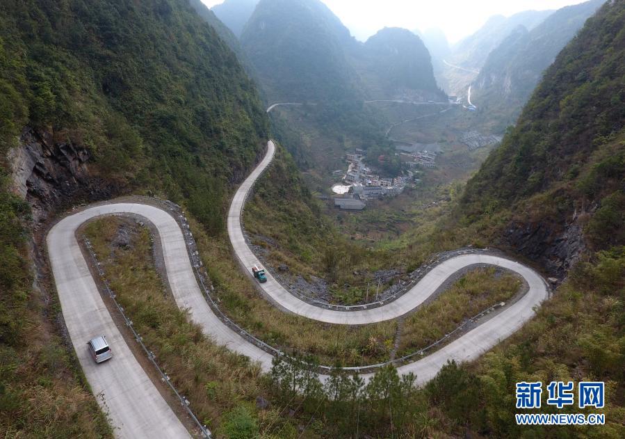 廣西百色市凌云縣泗城鎮(zhèn)隴雅村境內(nèi)的道路(2017年3月12日攝,無人機(jī)照片)。新華社記者 陸波岸 攝