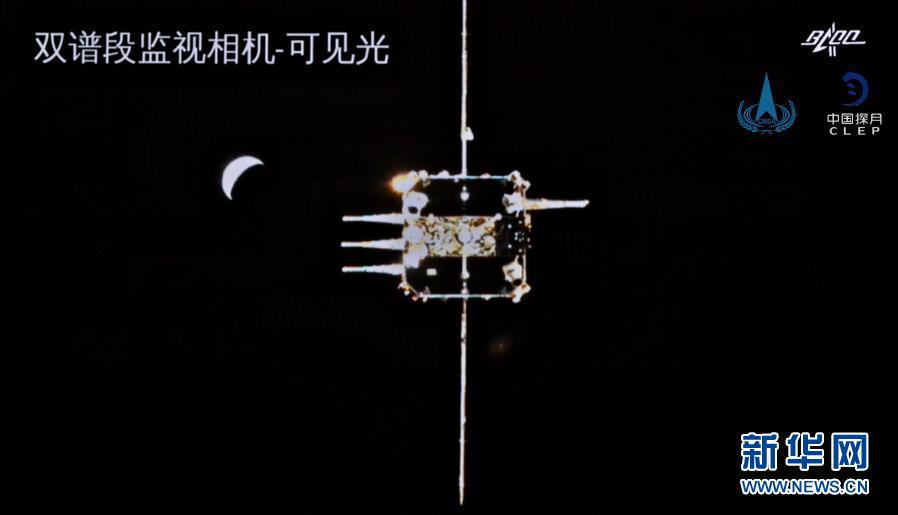 這是嫦娥五號(hào)軌道器返回器組合體逐漸接近上升器畫(huà)面。