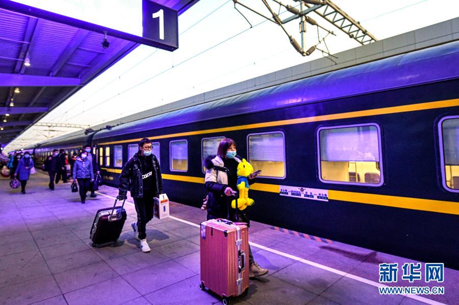 12月9日,在新疆庫爾勒站,旅客準(zhǔn)備登上K9756次客運(yùn)列車。新華社記者 王菲 攝