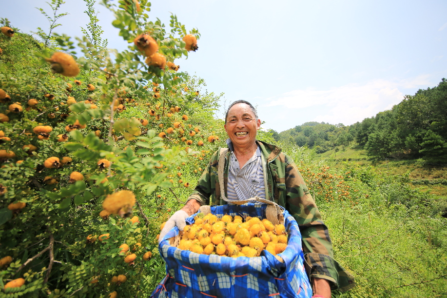 ????刺梨產業(yè)正成為群眾增收致富的好幫手,圖為貴州省黔南州貴定縣昌明鎮(zhèn)火炬村村民喜迎刺梨豐收,臉上掛滿豐收的喜悅。石銀超 攝