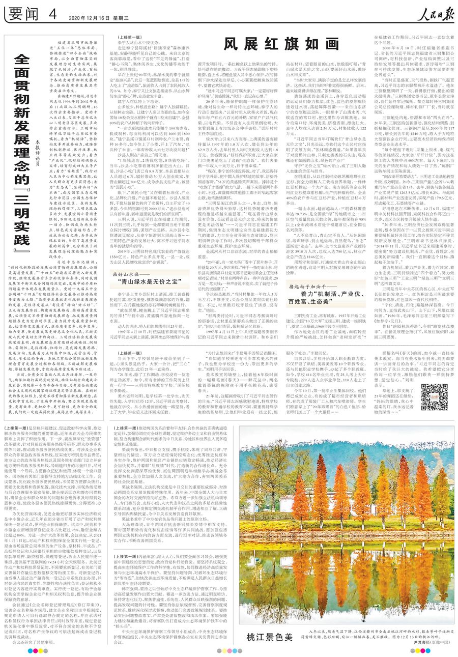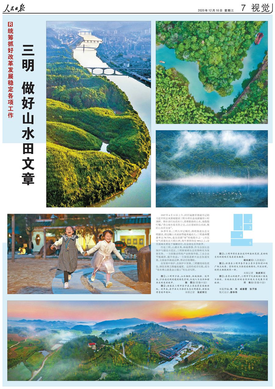 福建省三明市統(tǒng)籌推進“五位一體”總體布局、協(xié)調(diào)推進“四個全面”戰(zhàn)略布局,以全面貫徹落實新發(fā)展理念的生動實踐,展現(xiàn)了機制活、產(chǎn)業(yè)優(yōu)、百姓富、生態(tài)美的生動畫卷,對于各地更好貫徹新發(fā)展理念、推動高質(zhì)量發(fā)展具有重要啟示意義。今天人民日報推出多篇報道,刊發(fā)評論員文章,聚焦三明的探索和實踐。