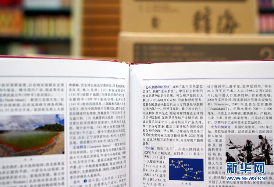 新版《辭?!分惺状问珍浀谋倍沸l(wèi)星導(dǎo)航系統(tǒng)等詞條(9月10日攝)。新華社記者 劉穎 攝