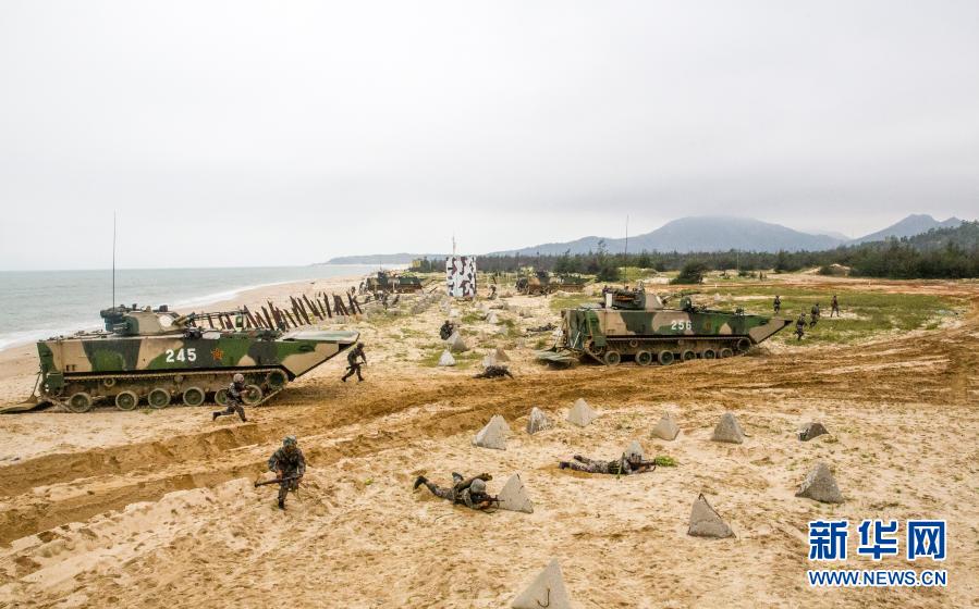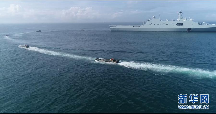 陸軍第72集團(tuán)軍某旅組織海上駕駛訓(xùn)練,戰(zhàn)車按協(xié)同隊(duì)形依次駛上海軍登陸艦(2018年8月16日攝,無人機(jī)照片)。新華社發(fā)(莊林毅 攝)