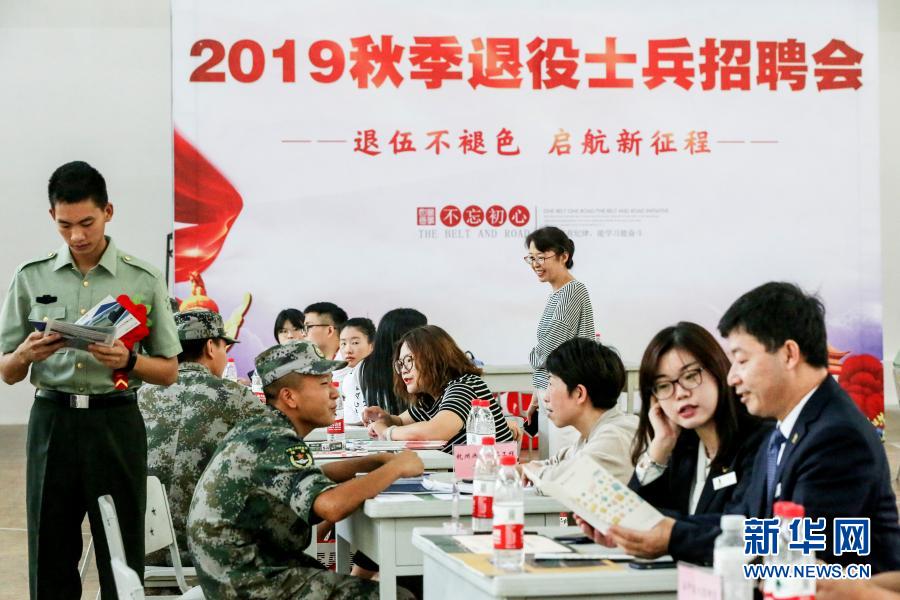陸軍第72集團(tuán)軍某旅與地方政府合作舉行秋季退役士兵招聘會(2019年8月30日攝)。新華社發(fā)(莊林毅 攝)