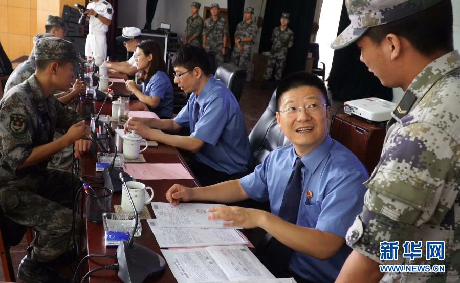陸軍第72集團(tuán)軍某旅開展軍地聯(lián)合送法下基層活動,官兵現(xiàn)場咨詢法律常識(9月16日攝)。新華社發(fā)(莊林毅 攝)