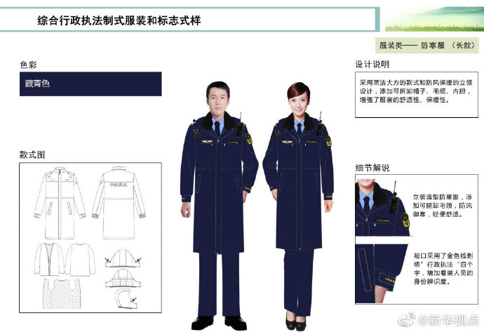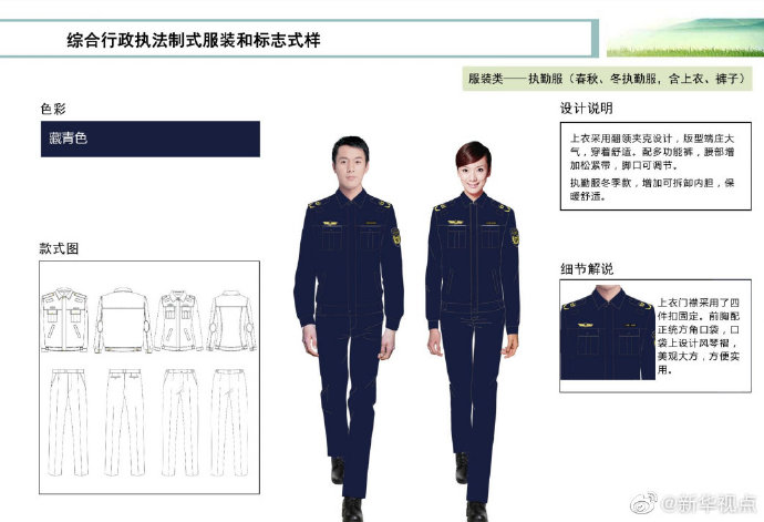 【這些綜合行政執(zhí)法部門將統(tǒng)一著裝,你喜歡嗎?】財政部、司法部日前印發(fā)《綜合行政執(zhí)法制式服裝和標志管理辦法》,明確加強生態(tài)環(huán)境保護、交通運輸、農(nóng)業(yè)、文化市場、應急管理、市場監(jiān)管等綜合行政執(zhí)法制式服裝和標志管理。這6支綜合行政執(zhí)法隊伍將統(tǒng)一著裝,不同執(zhí)法隊伍通過標志中的名稱和圖案加以區(qū)分,徹底解決長期以來不同執(zhí)法部門著裝五花八門的問題。來看看這些“新衣”預覽吧?。ㄓ浾呱赇?、白陽)