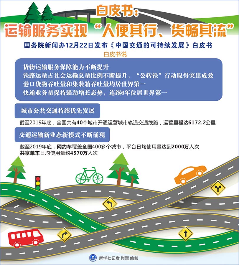 新華社北京12月22日電(記者魏玉坤、周圓)國務(wù)院新聞辦22日發(fā)布的《中國交通的可持續(xù)發(fā)展》白皮書介紹,運(yùn)輸服務(wù)實(shí)現(xiàn)“人便其行、貨暢其流”,通達(dá)性和保障性顯著增強(qiáng)。交通運(yùn)輸對國家經(jīng)濟(jì)社會(huì)發(fā)展的支撐顯著增強(qiáng),促投資、促消費(fèi)、穩(wěn)增長作用明顯。