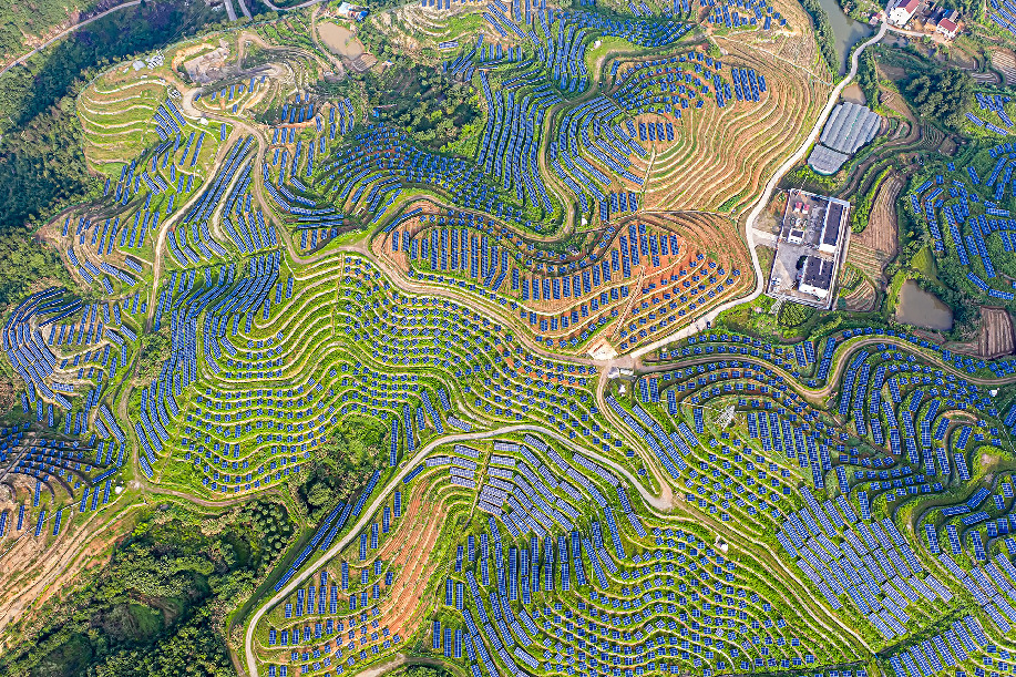 ????浙江省麗水市縉云縣充分利用列入浙江省首批清潔能源示范縣創(chuàng)建的契機(jī),積極挖掘現(xiàn)有可再生能源資源,認(rèn)真謀劃“光伏助村”“光伏助困”“光伏助農(nóng)”“光伏助企”“光伏助學(xué)”等“光伏+”模式,成功探索出“可實施、可推廣、可復(fù)制、可示范”的光伏發(fā)電發(fā)展的新模式,實現(xiàn)可再生能源項目開發(fā)與服務(wù)民生的有機(jī)結(jié)合。嵌在深山上的片片光伏成為了當(dāng)?shù)剞r(nóng)村農(nóng)民的致富星。 徐景蓉 攝