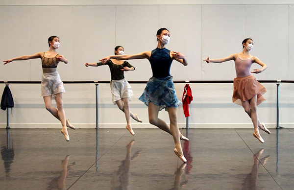 排練廳里架起了攝像機。芭蕾演員們彼此間隔超過兩米,戴著口罩,整齊協(xié)調(diào)地跳躍、起舞,姿態(tài)依然那么輕盈、優(yōu)美……項陽正是其中的“口罩舞者”之一。