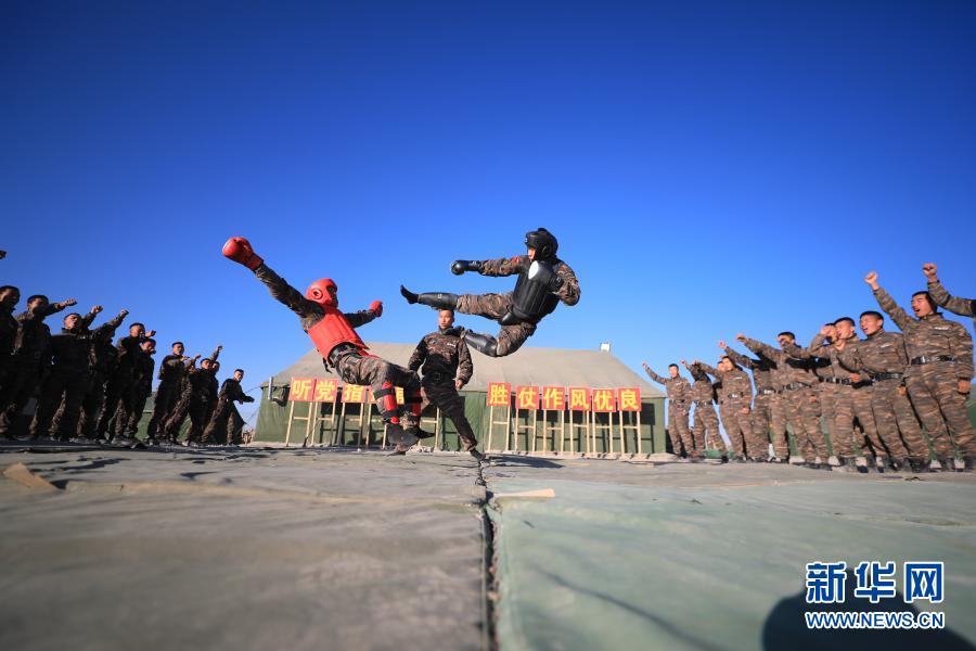 武警新疆總隊某機動支隊特戰(zhàn)一中隊組織官兵開展搏擊訓練(10月31日攝)。新華社發(fā)(張文 攝)