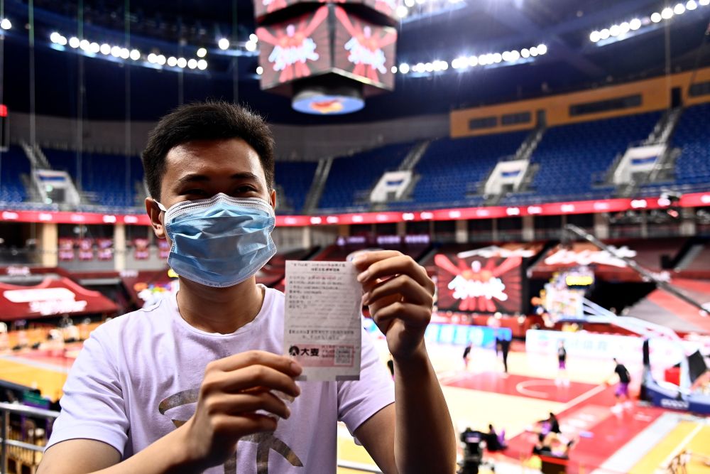 7月26日,在青島國信體育館,蘇柯帆展示著自己的紙質(zhì)球票。他成為CBA聯(lián)賽復(fù)賽允許觀眾現(xiàn)場觀賽后,首位進場的觀眾。
