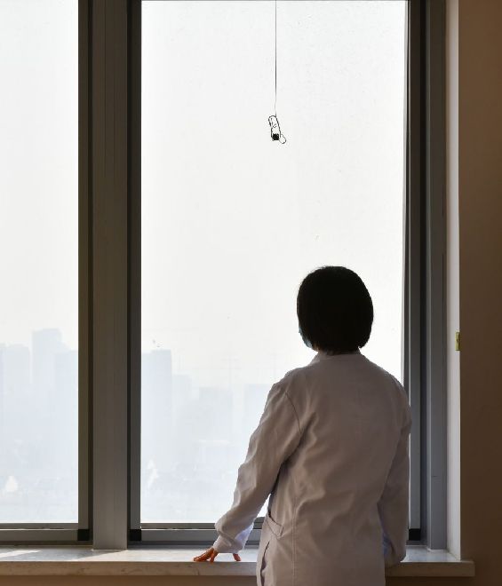 12月19日,在合肥市京東方醫(yī)院,周國(guó)紅在午休時(shí)間眺望窗外。