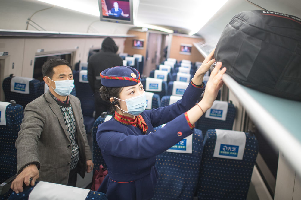“現(xiàn)在說(shuō)得最多的就是,請(qǐng)乘客戴好口罩、做好防護(hù)。經(jīng)歷了這么大一場(chǎng)疫情,感覺(jué)肩上的擔(dān)子更重了,做好服務(wù)的同時(shí)更要確保每一名乘客的安全?!闭驹谟浾呙媲暗闹袊?guó)鐵路武漢局集團(tuán)有限公司武漢客運(yùn)段高鐵乘務(wù)員艾婷婷20歲剛出頭,言語(yǔ)中顯露出超出同齡人的成熟。