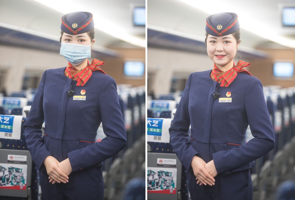 隨著疫情防控形勢(shì)好轉(zhuǎn),武漢、湖北的生活基本恢復(fù)正常。但是高鐵列車(chē)上,每個(gè)人都必須戴著口罩。“只要大家團(tuán)結(jié)一心,什么樣的困難都是可以克服的,現(xiàn)在的想法就是好好工作,做好每一次服務(wù)?!眳⒓庸ぷ鲃倽M兩年,艾婷婷對(duì)自己的工作有了更深的理解。