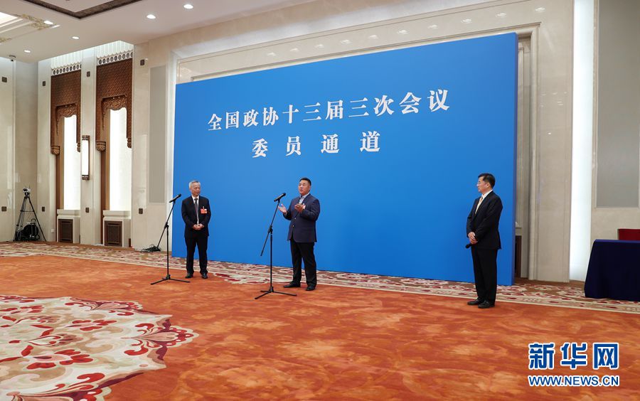 全國政協(xié)十三屆三次會議首場“委員通道”采訪活動于5月21日在人民大會堂新聞發(fā)布廳舉行,邀請部分全國政協(xié)委員通過網(wǎng)絡視頻方式接受媒體采訪。圖為“委員通道”現(xiàn)場。新華網(wǎng) 王翰林 攝
