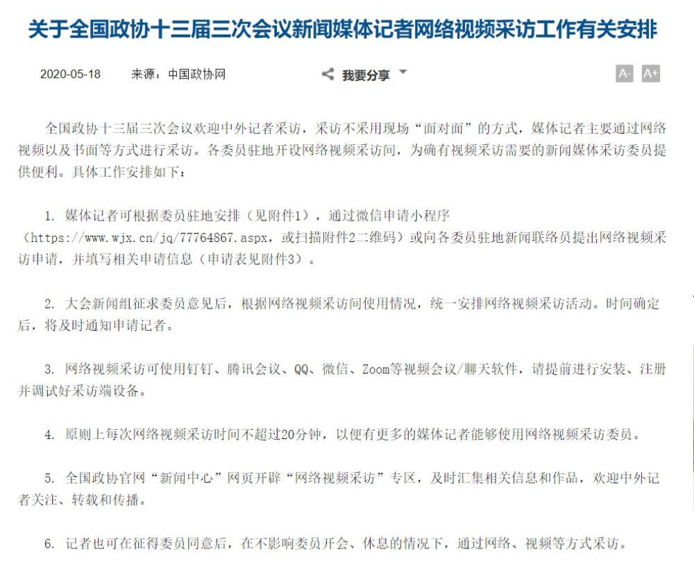 兩會(huì)開(kāi)幕在即,5月18日,中國(guó)政協(xié)網(wǎng)發(fā)布了這樣一則通知: