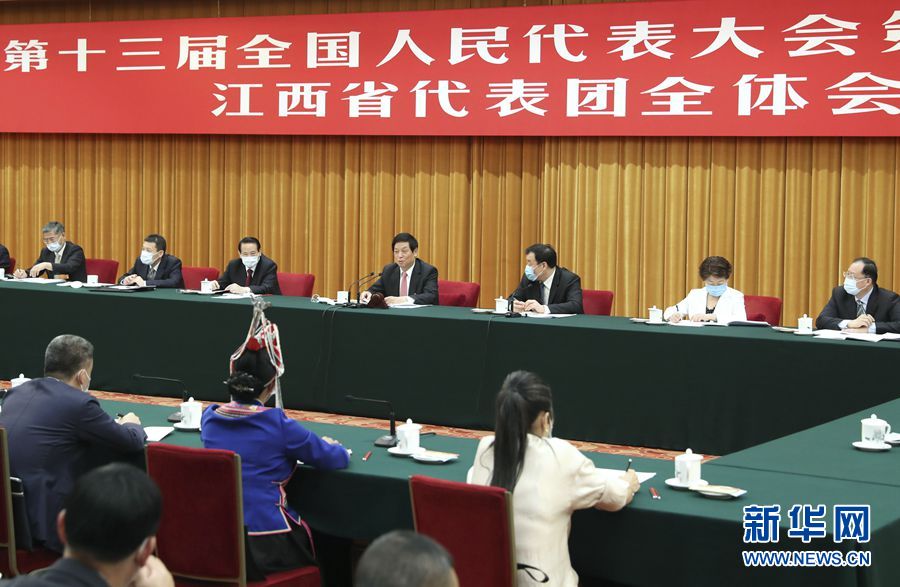 5月22日,中共中央政治局常委、全國人大常委會(huì)委員長栗戰(zhàn)書參加十三屆全國人大三次會(huì)議江西代表團(tuán)的審議。 新華社記者 丁林 攝