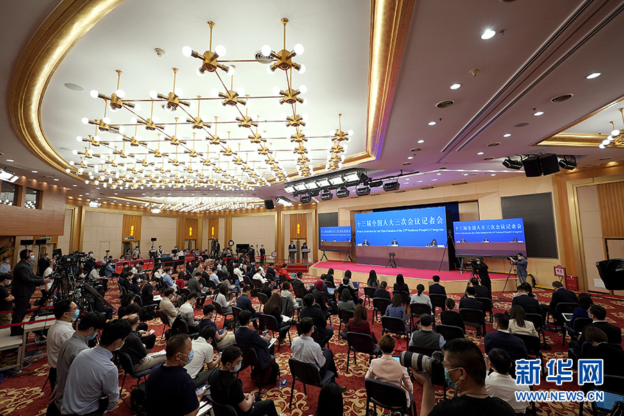 5月28日,國(guó)務(wù)院總理李克強(qiáng)在北京人民大會(huì)堂出席記者會(huì)并回答中外記者提問。這是記者在梅地亞中心多功能廳采訪。 新華社記者 劉金海 攝