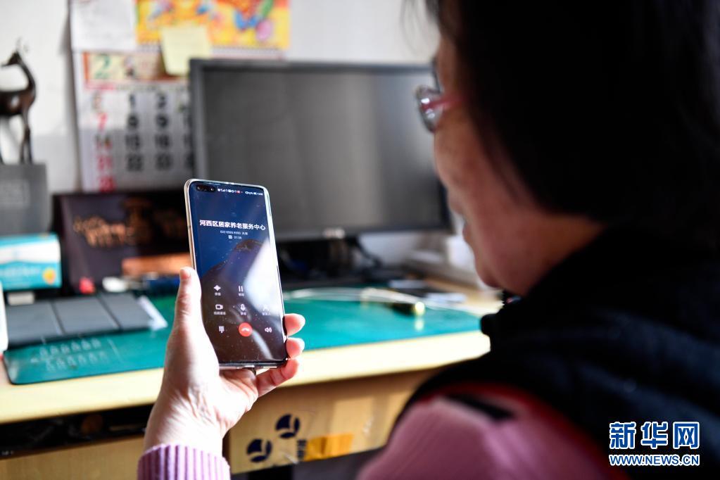 家住天津市河西區(qū)桃園街道的獨居老人在體驗居家養(yǎng)老服務(wù)的智能外呼系統(tǒng)(2月9日攝)。新華社記者 趙子碩 攝