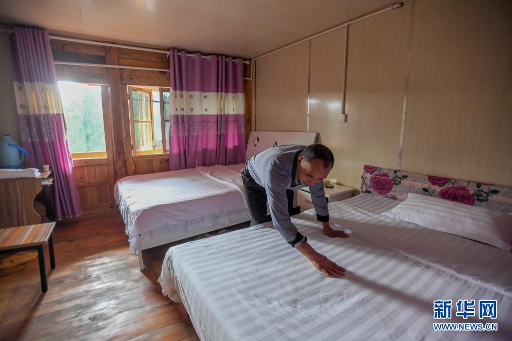 湖南省湘西土家族苗族自治州花垣縣十八洞村村民楊秀富在整理自家民宿(2019年9月3日攝)。新華社記者 陳澤國(guó) 攝