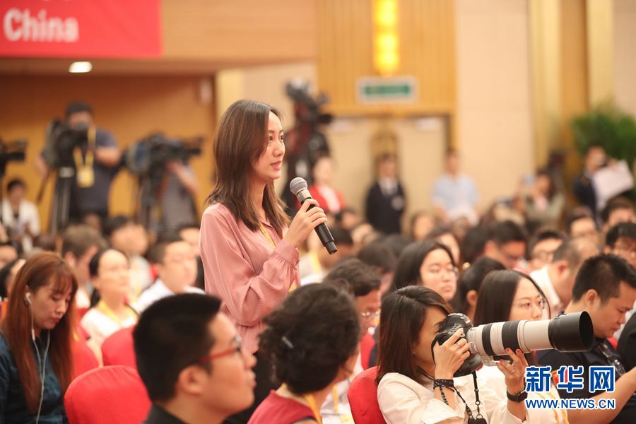 9月24日,慶祝中華人民共和國成立70周年活動(dòng)新聞中心在北京梅地亞中心二層新聞發(fā)布廳舉辦第一場(chǎng)新聞發(fā)布會(huì)。圖為媒體記者提問。新華網(wǎng)記者 陳競(jìng)超 攝