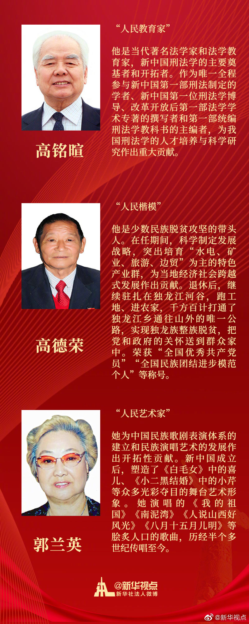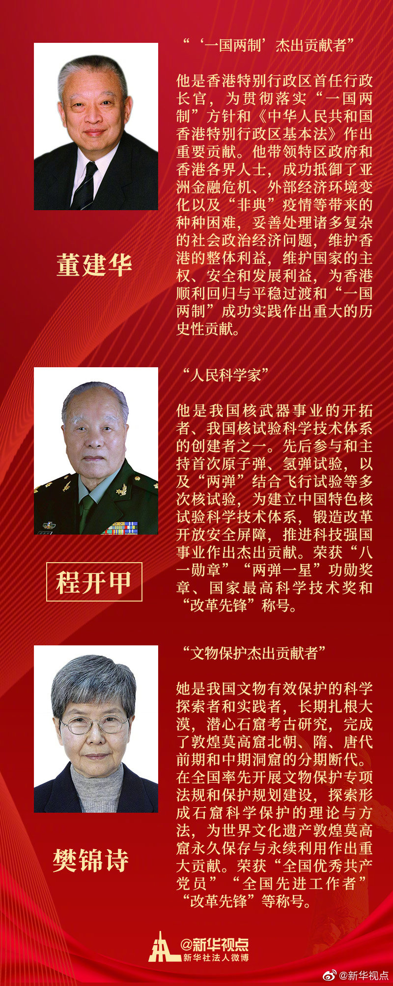 南仁東、董建華、于漪、王蒙、王有德等28人獲授國(guó)家榮譽(yù)稱(chēng)號(hào)。他們與時(shí)代同行、砥礪奮進(jìn),為共和國(guó)的事業(yè)鞠躬盡瘁,不朽的“鋼鐵精神”將永遠(yuǎn)激勵(lì)著我們。為這些閃亮的名字點(diǎn)贊!轉(zhuǎn)發(fā)傳遞,致敬功勛!
