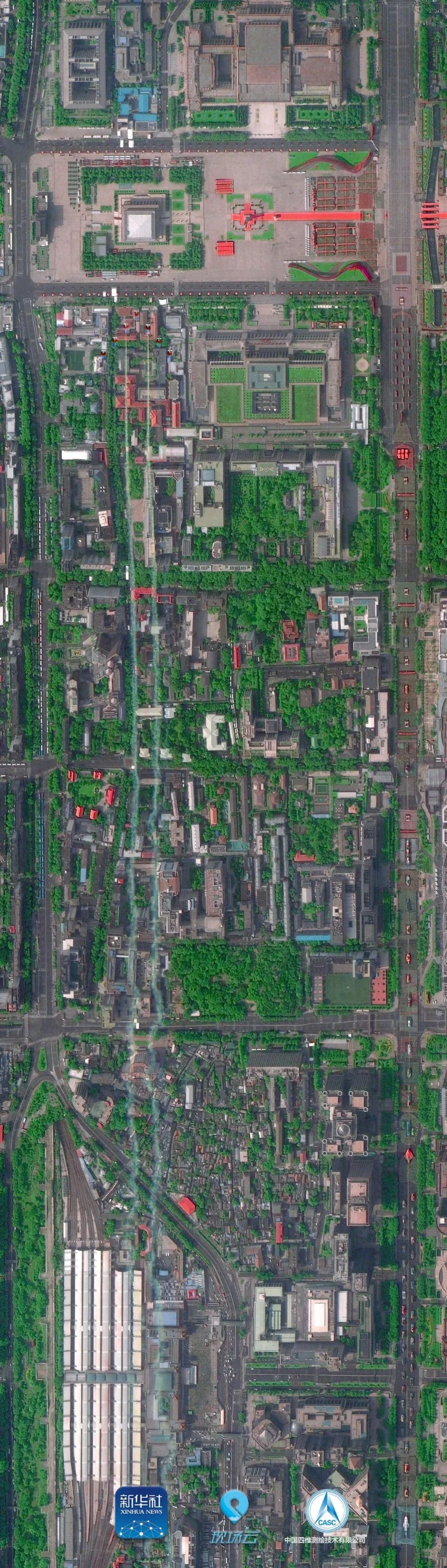 10月1日,“高景一號”拍攝的北京長安街全畫幅衛(wèi)星閱兵圖