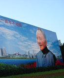 廣場一端的巨幅畫像上,改革開放的總設(shè)計師鄧小平身著淺灰色中山裝,堅毅地凝視著前方。畫面左上方寫著:“堅持黨的基本路線一百年不動搖。”