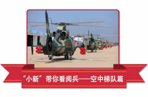 方隊由26架直升機和7架教練機組成。國旗和軍旗分別由1架直升機在正下方懸掛、由2架直升機護衛(wèi),組成兩組三機梯隊,呈品字形依次通過。緊隨其后的是由20架直升機組成“70”字樣,寓意中華民族以抗戰(zhàn)勝利為起點走向偉大復(fù)興的征程。這是我國在閱兵中首次采用紀念數(shù)字的編隊飛行。