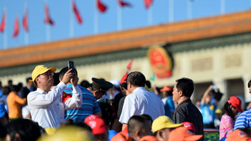 - 李克強、張德江、俞正聲、劉云山、王岐山、張高麗登上城樓,江澤民、胡錦濤登上城樓