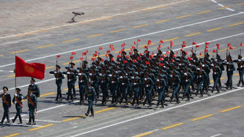 這是我國首次邀請外軍參加閱兵。白俄羅斯、古巴、埃及、哈薩克斯坦、吉爾吉斯斯坦、墨西哥、蒙古國、巴基斯坦、塞爾維亞、塔吉克斯坦、俄羅斯等11國派方隊參閱,每個方隊參閱人數(shù)為75人左右。阿富汗、柬埔寨、斐濟、老撾、瓦努阿圖、委內(nèi)瑞拉等6國派代表隊參閱,每個代表隊參閱人數(shù)為7人左右。