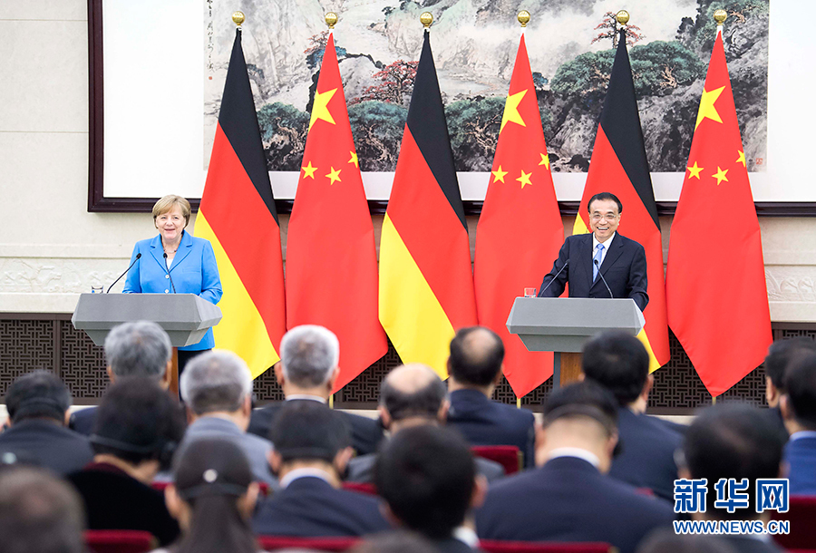 5月24日,國務院總理李克強在北京人民大會堂與德國總理默克爾會談后共同會見記者并回答提問。 新華社記者 李濤 攝