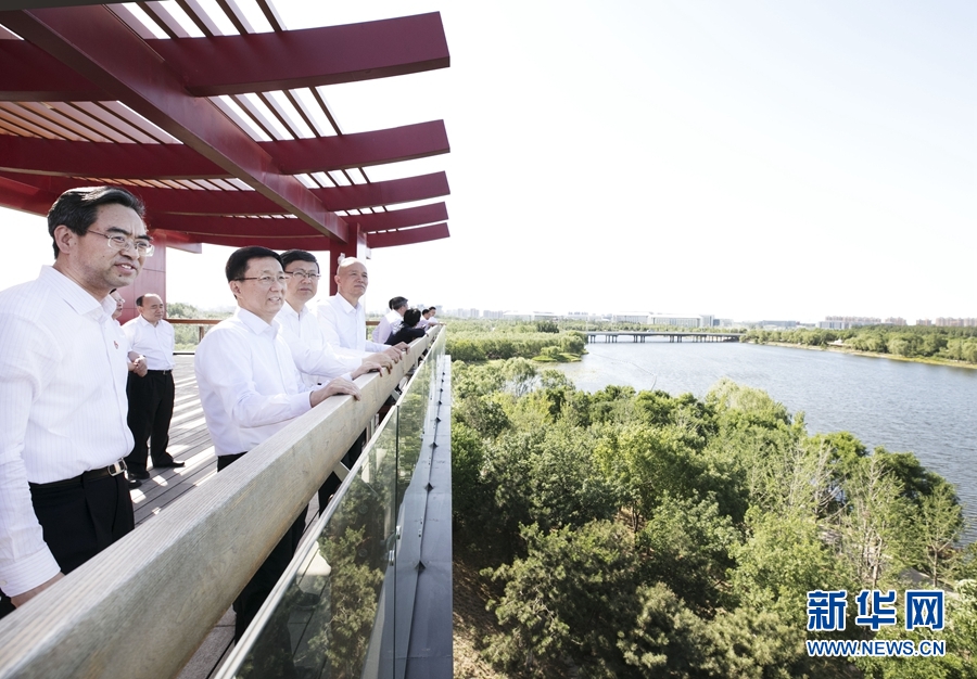 5月28日,中共中央政治局常委、國(guó)務(wù)院副總理韓正在北京市通州區(qū)調(diào)研北京城市副中心規(guī)劃建設(shè)工作。這是韓正在大運(yùn)河森林公園察看大運(yùn)河沿岸生態(tài)環(huán)境治理情況。新華社記者 王曄 攝