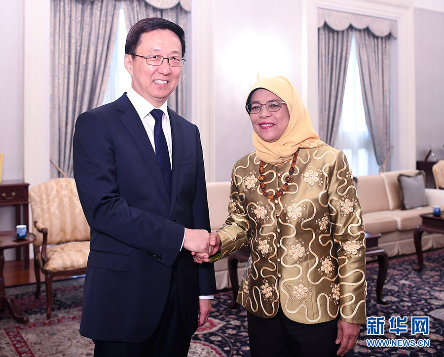 在同新方領(lǐng)導(dǎo)人會(huì)見(jiàn)時(shí),韓正轉(zhuǎn)達(dá)了習(xí)近平主席、李克強(qiáng)總理對(duì)哈莉瑪總統(tǒng)、李顯龍總理的親切問(wèn)候,哈莉瑪和李顯龍表示感謝并請(qǐng)韓正轉(zhuǎn)達(dá)他們對(duì)中國(guó)領(lǐng)導(dǎo)人的良好祝愿。